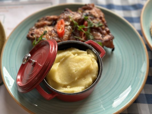 Курка на грилі була на смак сухої ганчірки, вона не мала взагалі ніякого смаку, скоріш за все вона навіть не була попередньо маринована. Такі ж самі і ребра, просто кинули ребра на гриль і подали до столу.