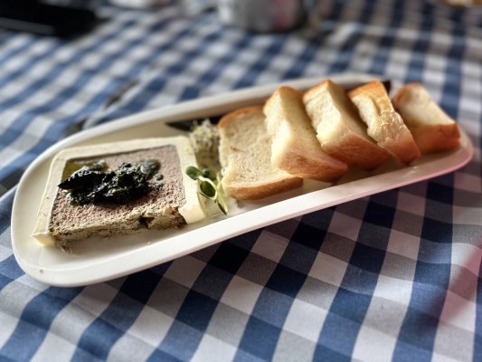Паштет з печінки подали з великими, не свіжими, холодними шматками хліба.