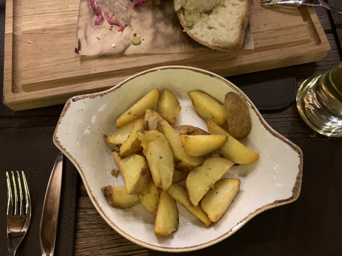 Хорош этот ресторан не только своим дорогим интерьером и экстерьером, но так же и кухней. Мы решили перепробовать все их них, заказывая разные и делясь друг с другом. Не могу назвать эту кухню высокой, возможно они и не претендовали на это, но как минимум все было вкусно и с оригинальной подачей. Блюда абсолютно незамысловатые, и даже где-то совсем не ресторанные, но вот именно своей простатой они нас и подкупили. Устали мы от всяких там дефлопе и крутонов )