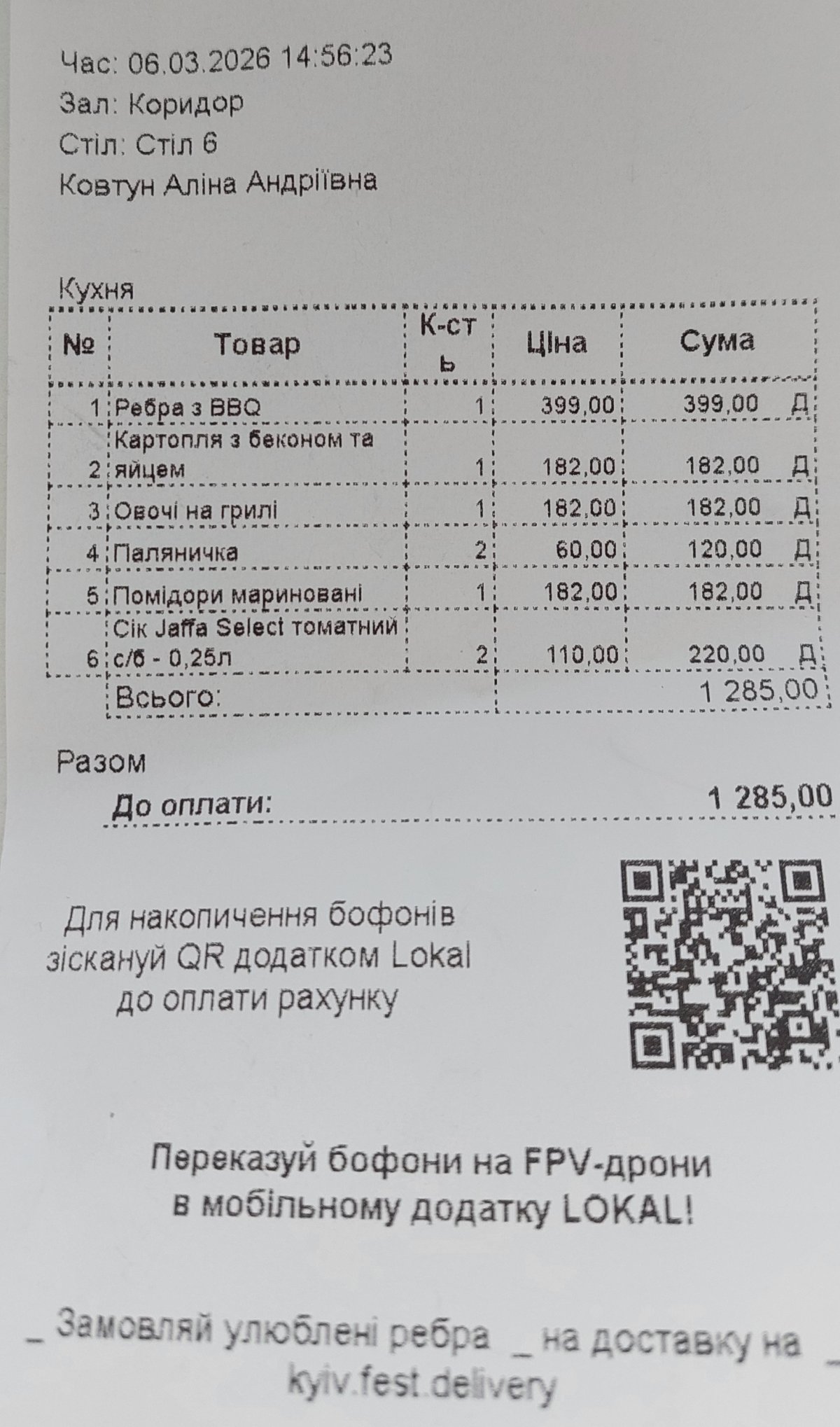6 березня близько 14:00 ми зайшли до «Реберні» на Арсенальній просто спокійно пообідати. Заклад був майже порожній, людей практично не було. Але вже з входу почалося дуже дивне і неприємне ставлення.